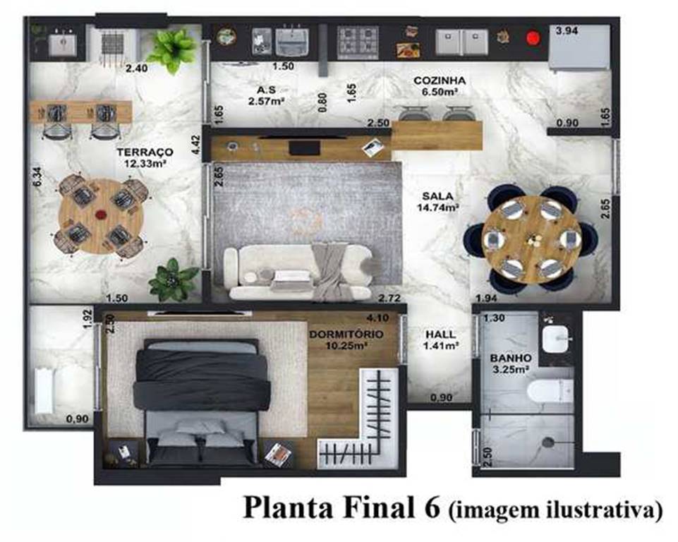Área Útil56,86m²