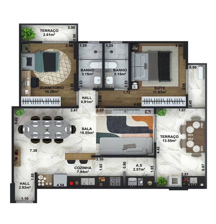 Área Útil85,97m²